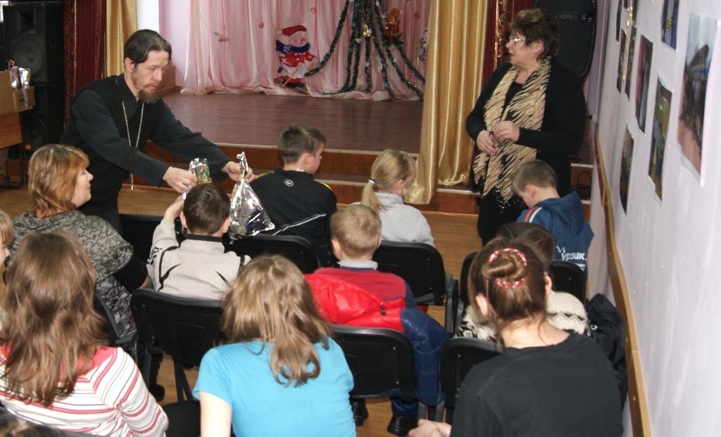 13 января дети из Сафоновской школы-интерната получили сладкие подарки, купленные прихожанами храма Рождества Христова.